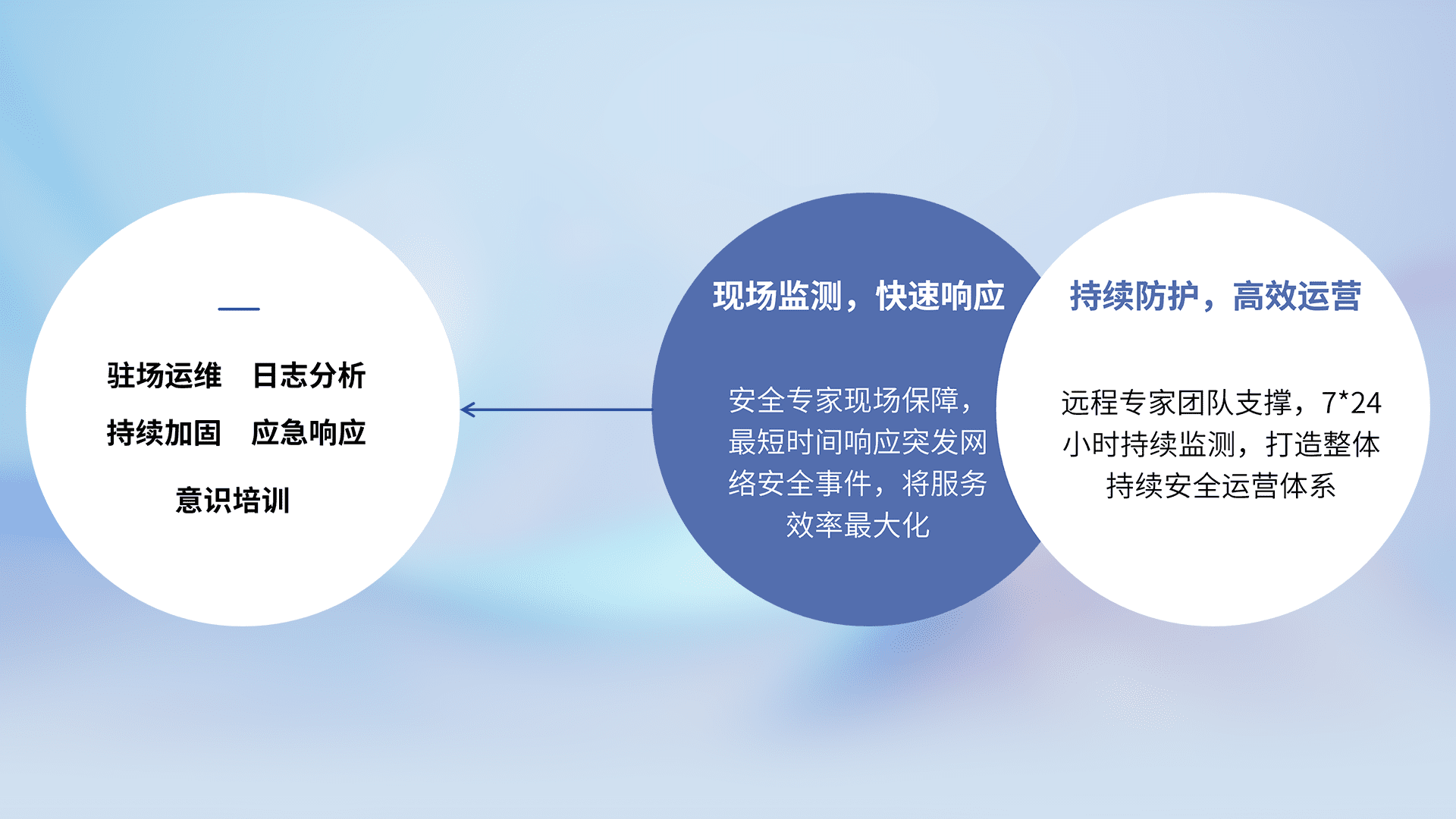 针对客户行业特性,,,,提供专属的一站式安全管理服务,,,,帮助客户全面感知网络空间威胁,,通过安全专家的线上、、、线下防护支持,,实现风险闭环,,将安全保障常态化,,,为客户打造常态化安全运维运营服务。。。。